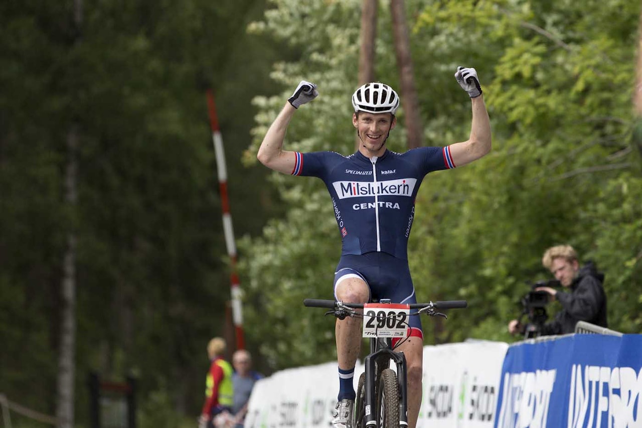 – Nå skal jeg nyte det å ha to norgesmestertrøyer så lenge det varer, sa Ola Kjøren med et glis etter målgang i dagens rundbaneritt på Grønmo utenfor Oslo.