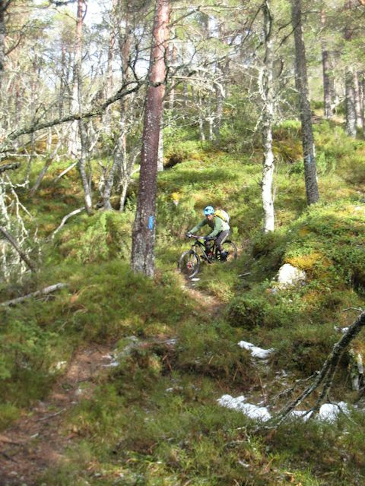 Ta en titt på videoen før turen så ser du kor du skal ta for å unngå brattmyra ned fra toppen, og kor du skal ta rett før traktorvegen for å få singletrack helt ned til riksvegen istedetfor traktorveg.U.t. har brukt endel tid på å tett de største myrhulla med stein, følg svapartier og steinsatt sti der det er mulig (stien går ofte nedi myra istedetfor på svaene fordi fotgjengere er glade i myr eller noe sånt)Deler av turen, det som går igjennom åpen furuskog, er naturreservat. Vær ekstra snill mot stien her, ikke sykl når det er vått, og bær sykkelen over myrhull, og hjelp gjerne til å tette myrhullene med skifer fra bekken. Skjemmende hjulspor i fotgjengeropptråkkede myrhull er ikke god propaganda for stisykling, selvom det ikke er vår feil at stien er markert over bløte områder.