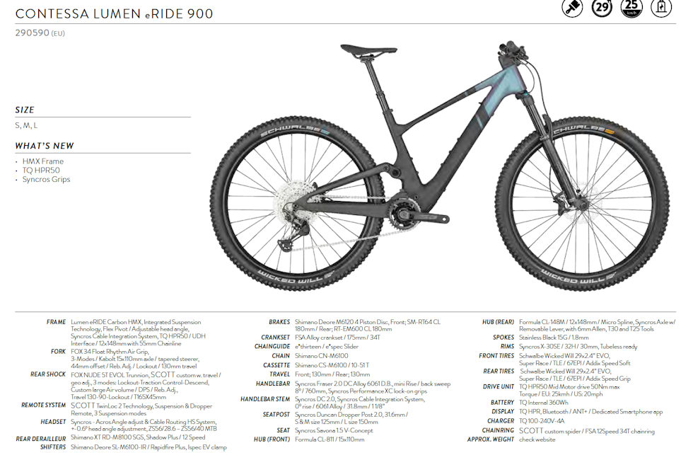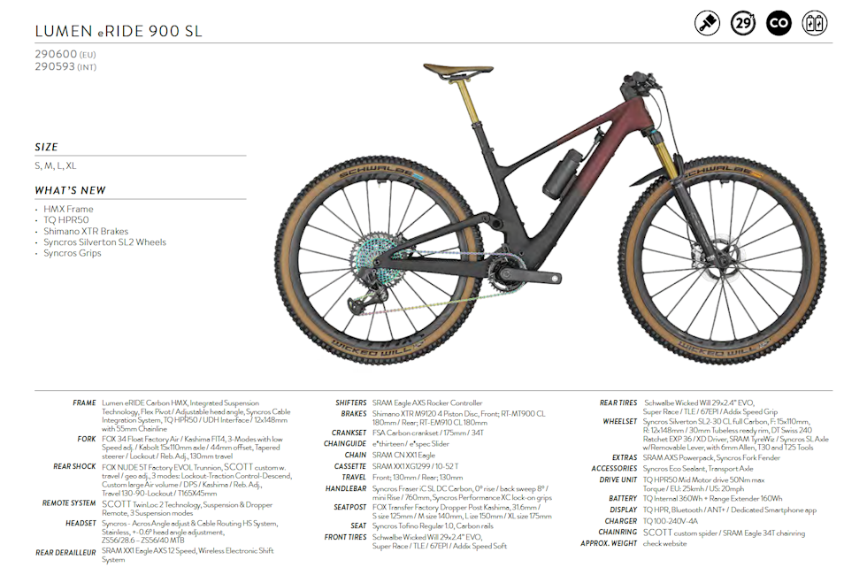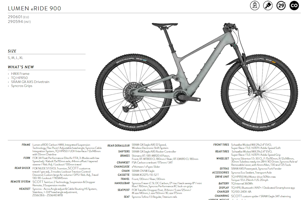 Motoren Scott har brukt på Lumen er den samme som vi så da Trek nylig slapp sin Fuel EX E - en lett motor fra TQ. Den har 50 newtonmeter dreiemoment, og et integrert batteri på 360Wh. Med Range Extender-batteriet man kan kjøpe i tillegg, kan du få opp til 520Wh, noe Scott mener skal holde til over 80 kilometer sykling. Dette tallet vil selvfølgelig være sterkt avhengig av hvor mye motorkraft du bruker, og hvor mye du selv legger i pedalene.