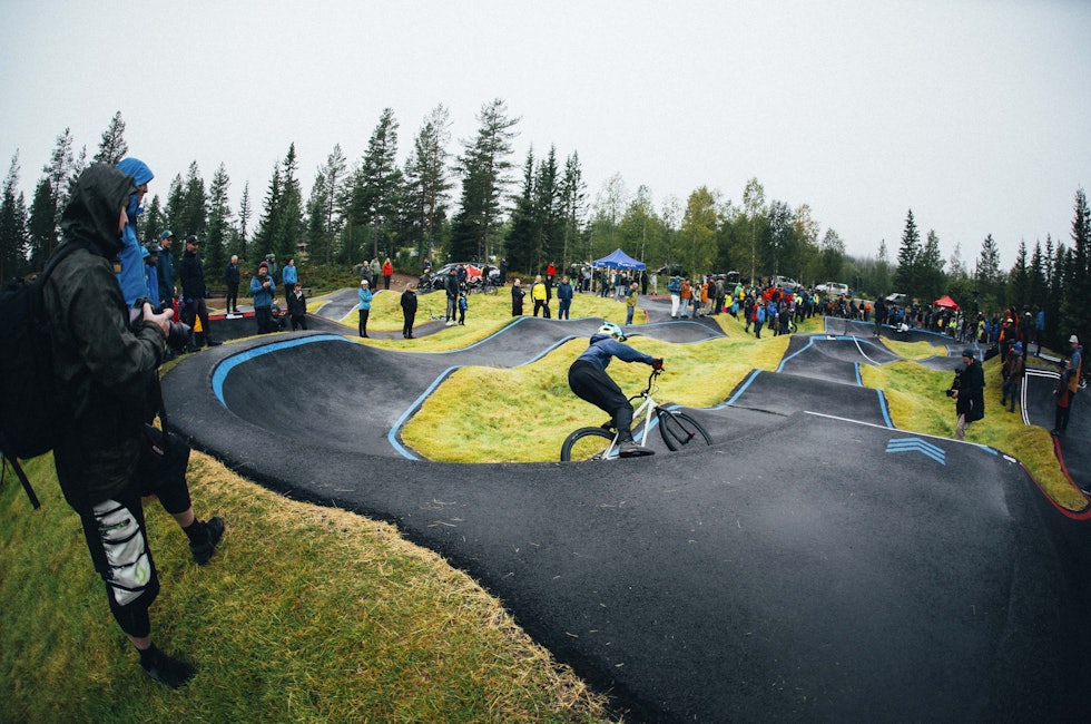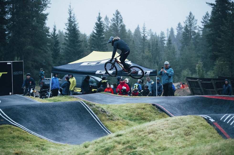 Grått vær og regn ga kanskje ikke optimale forhold, men syklistene ga full gass i den svære pumptracken i Trysil.