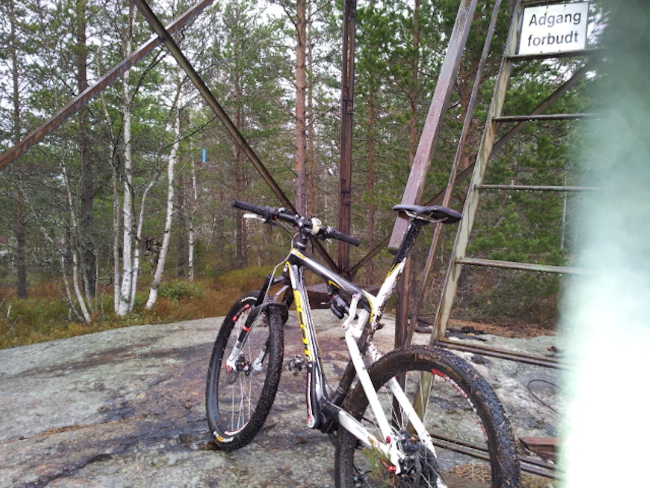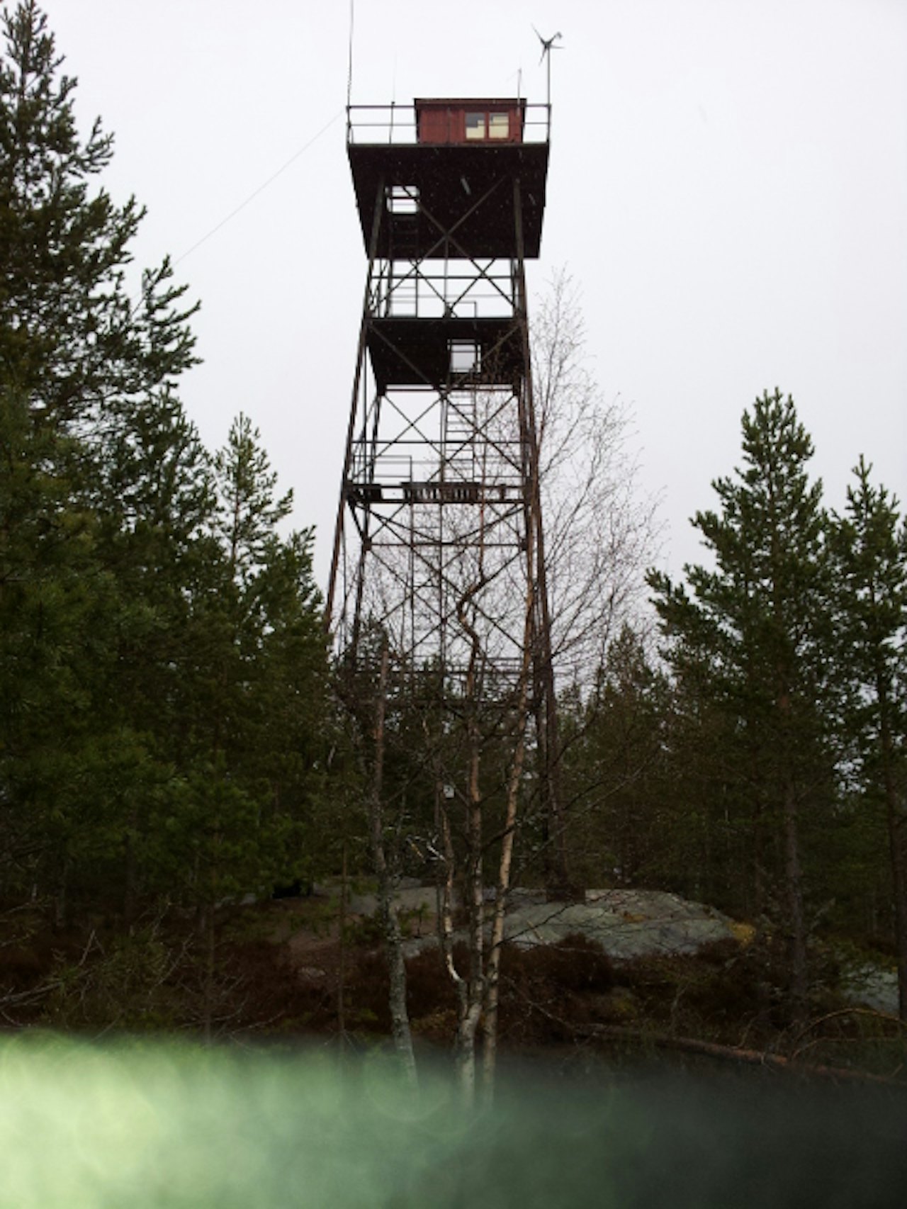 Følg traktorveien oppover. Det kan være litt sleipt hvis det nettop har regnet. Om du vil innom Branntårnet, slik GPS sporet viser må du ta av på en sti til høyere rett før toppen.Stien kan være litt utydelig på toppen over svabergene. Bruk kart, gps og se etter de små vardene.Artig traktorvei nedover.Dette er en rute du ikke finner fram på uten kart eller gps.