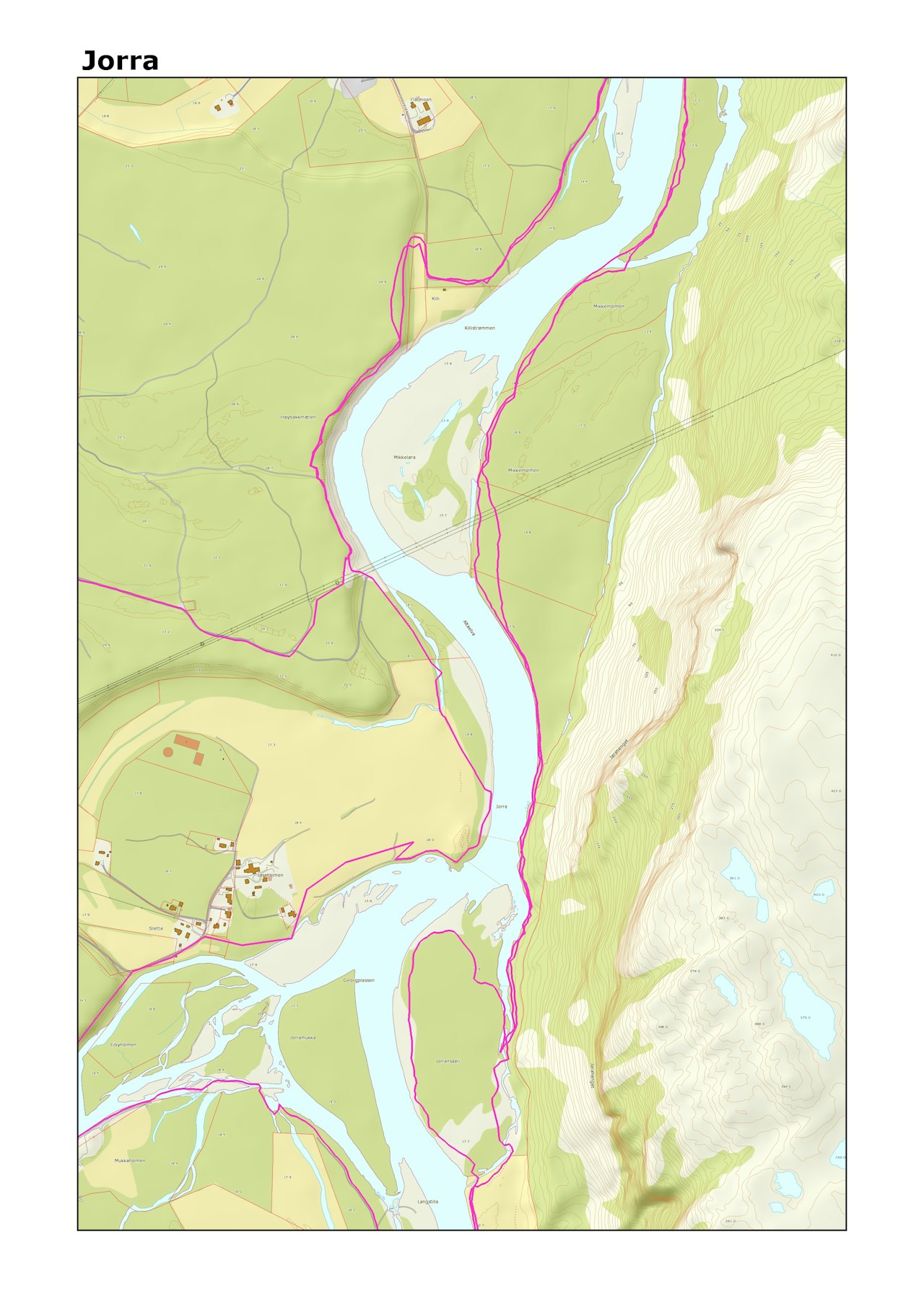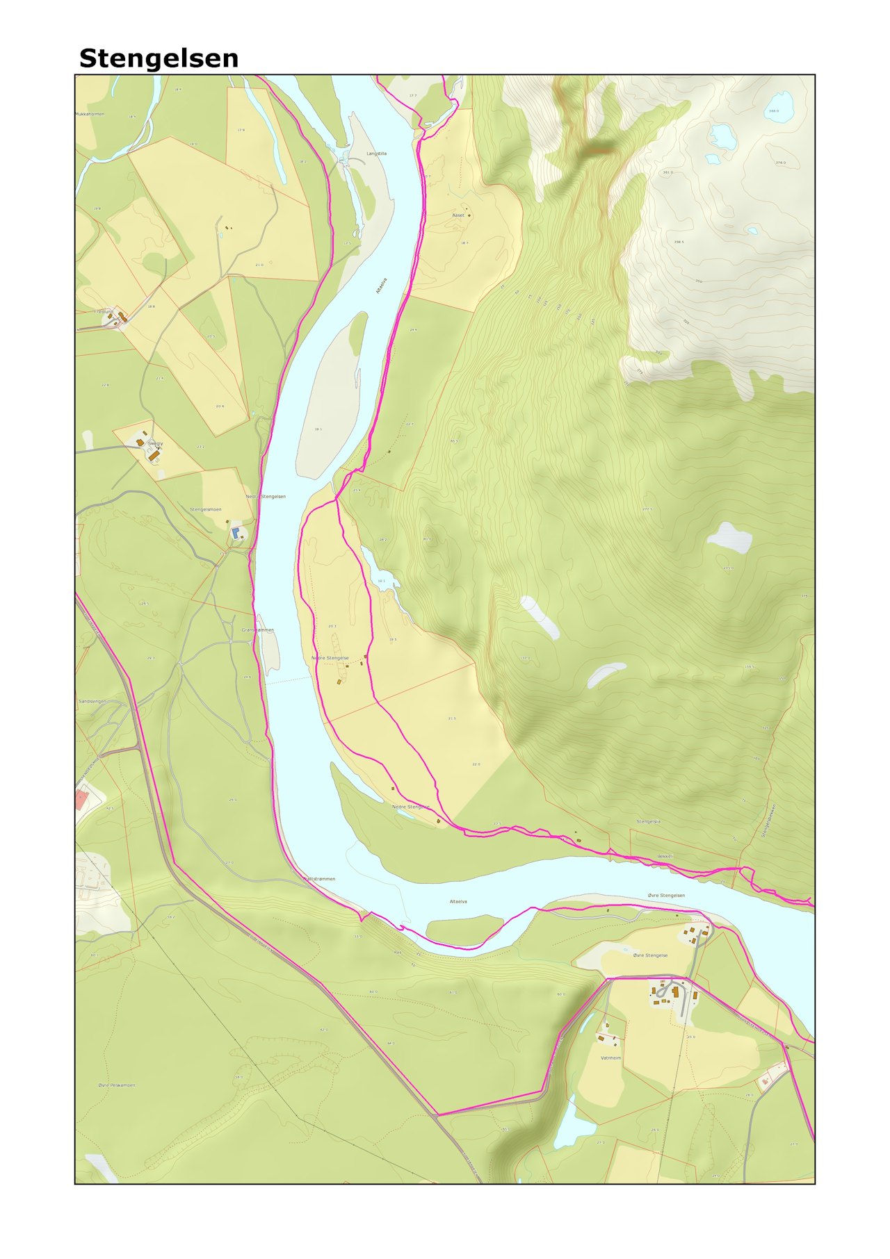 Stien følger over Jordfallet og ned en kjerrevei til Flomfaret. En annen variant er å følge elva fra Jordfallet. Stien følger elva til Stengelsen, men tar her litt opp i skogen til Sorrisniva. Herifra og ned følges Offroadfinnmark-traseen med mange muligheter for ulike varianter.Bruk GPSspor eller vedlagte kart for f;lge traseen.