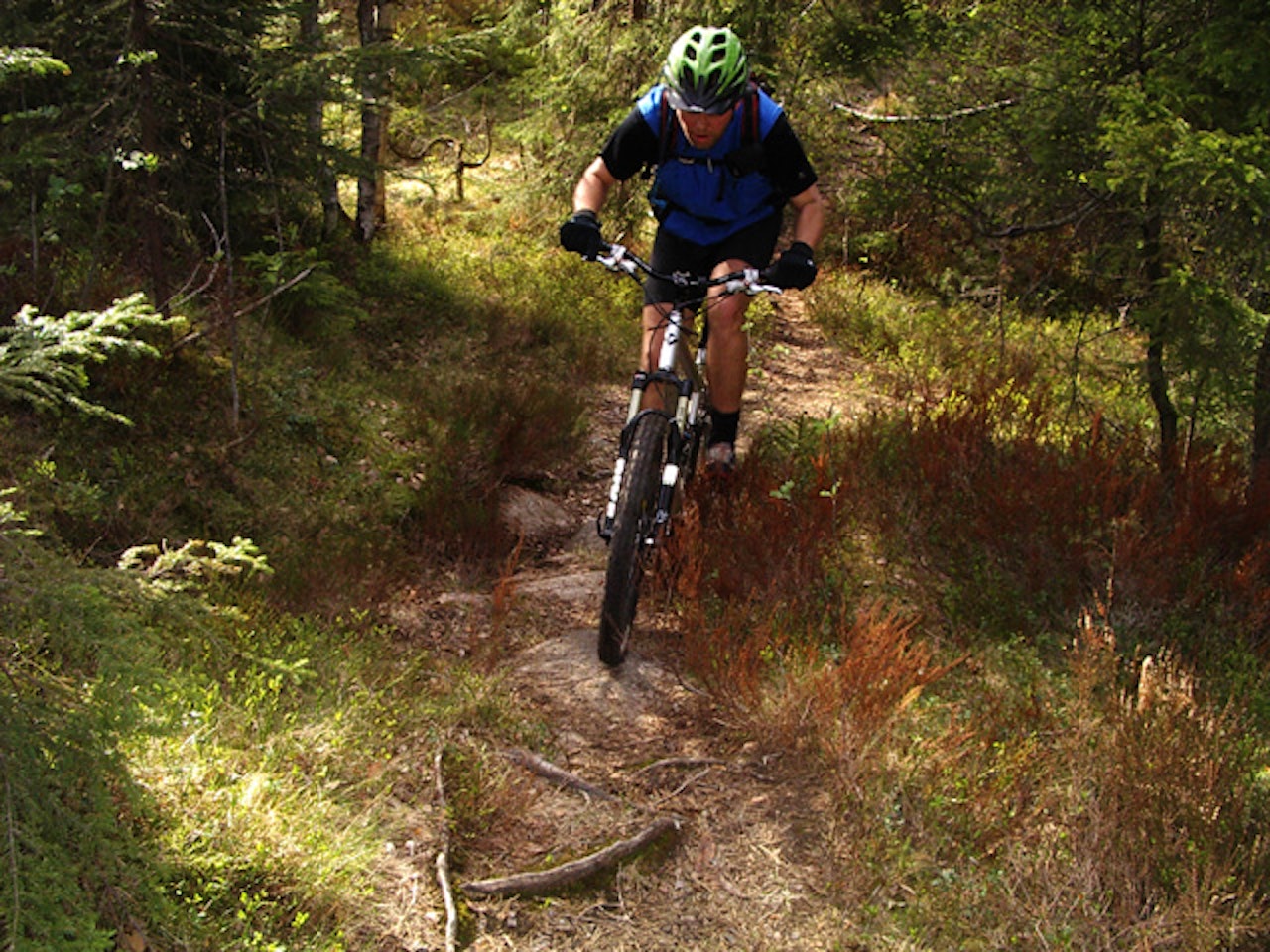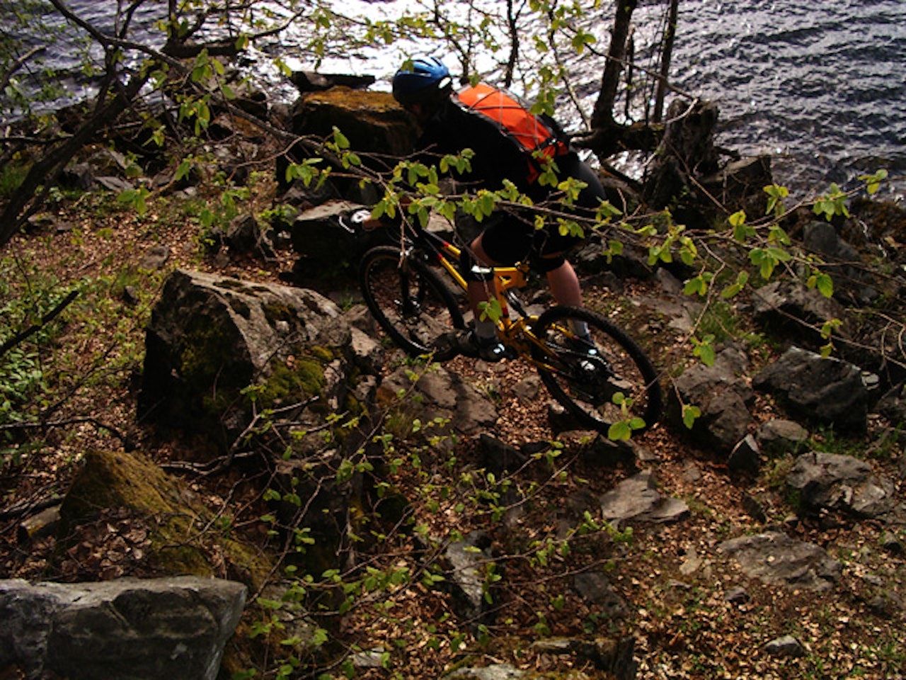 Del 3. Singeltrackmoro rundt Oppsjø.- Ta til høyre i lysløypa.- Etter ca 150m ta til venstre.- Etter ca 50 m ta til venstre igjen.- Ta andre sti til høyre (etter ca 100m). Både denne og den første til venstre er smale og litt skjulte så følg med.- Hold til venstre nedover.- Ta til venstre i bunnen.- Ta første sti til venstre.- Ta så til høyre.- Ta neste til vestre.- Ta til høyre inn i lysløypa.- Etter ca 200m ta stien til høyre. Denne kommer rett etter et bekkeleie.- Stien fører ned til Oppsjø.- Følg stien rundt til østsiden av Oppsjø.- Her er det en fin rasteplass og mulighet for en dukkert.- Fortsett stien opp til høyre.- Ta tredje sti til venstre.- Hold til høyre i neste kryss.- Ta andre sti til venstre. Kommer du til et stikryss med en bredsti har du kjørt 50 m for langt.- Ta første til høyre og hold deretter til venstre nedover til du er i bunnen av bakken.