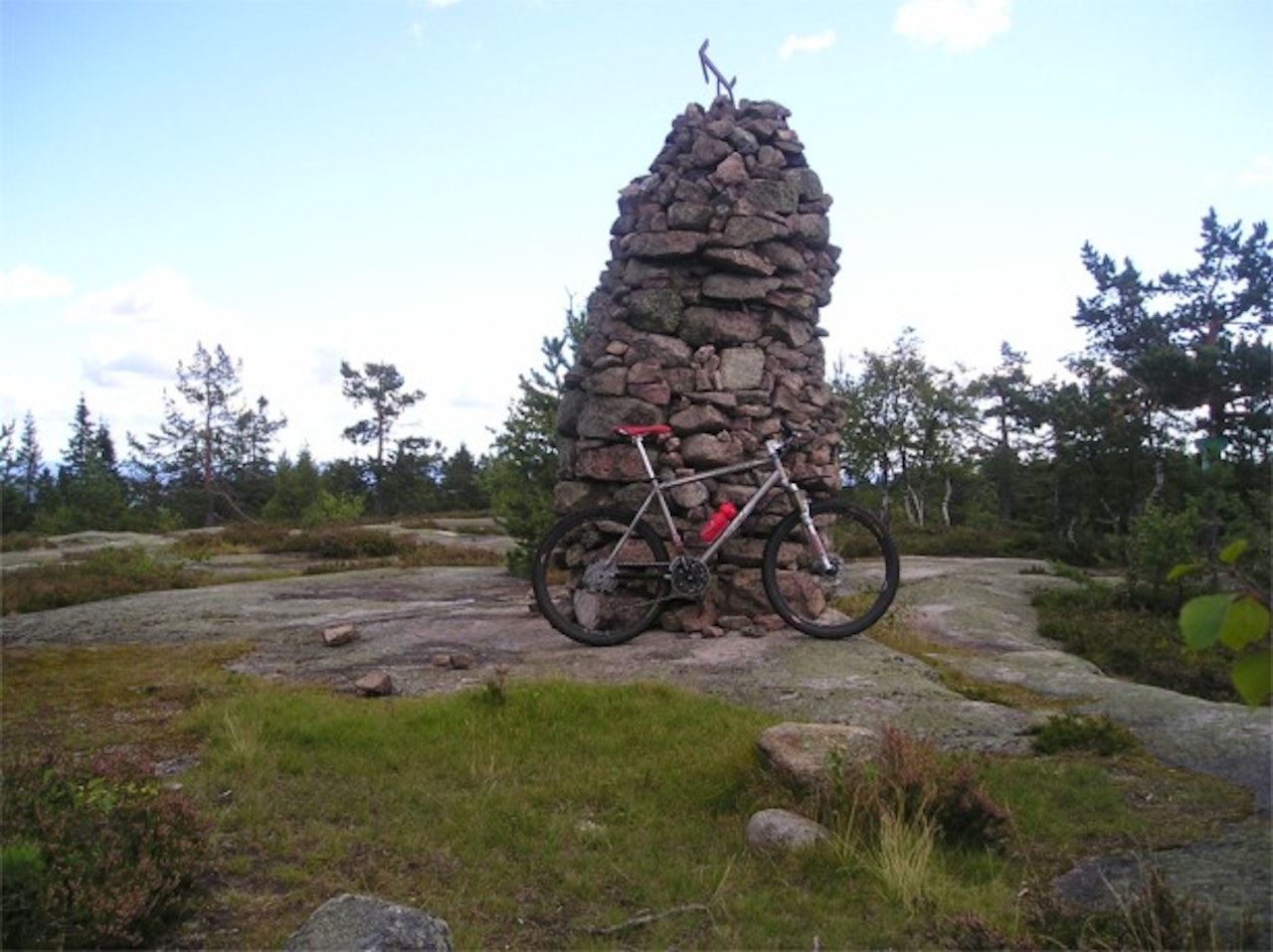 Videre på grus/sva til Tverken (skiltet) hvor man kan kjøpe vaffel og glasscola. Derfra følger vi variert sti og litt teknisk klatring opp mot Skimten (skiltet). Oppe på platået er det noe myr, men stort sett kjørbart. Ved Skimtvarden (554m) er det verdt å merke seg at Dr. Bamsemums overnattet her en gang han syklet seg bort :-)