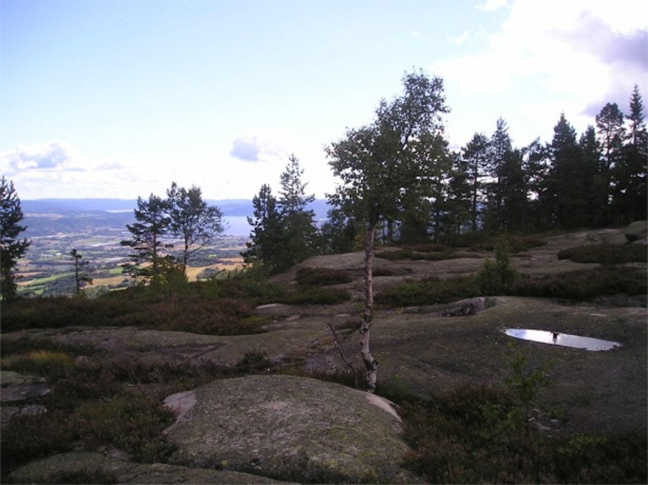 Toppvarden er høyest (540m), men utsikten er finest. Fortsett nedover svabergene til trig-punktet ute på kanten. Det går sti hit, men det er like morsomt å bare leke seg nedover på granitten. Fra utsikten ser man Lierdalen, Vestmarka, Nordmarka, Oslofjorden, Hurumlandet og Drammensfjorden.