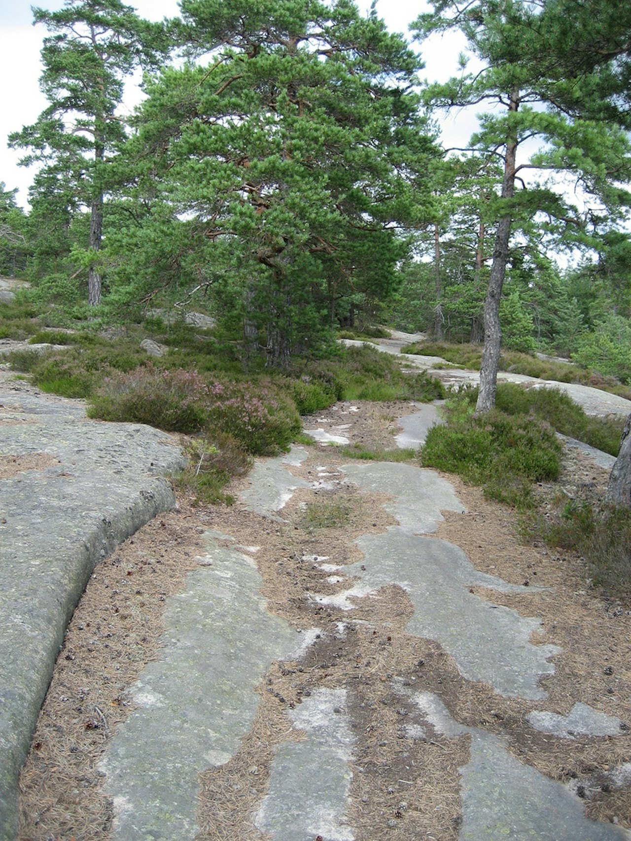 Herfra er stienvanskelig å følge, men du skal rett frem og ned i skogen igjen oginn til høyre på en bred sti.Følg denne til den svinger mot venstre. Her ligger det to nedblåstefuruer: Du skal videre på oversiden mellom steinblokkene. Her er stienutydelig, men følg kanten til du ser stien som forsvinner ut gjennomet lite krøx med to steinblokker. Du kommer inn i tettere skog dreierhøyre og venstre og får en lengre rett stigning opp på Ødegårsfjella.Denne stien langs steinbruddene kan være vanskelig å følge, og etter300m skal du ned noen høydemeter i vestlig retning og det er gansketeknisk. Jeg mener dette kanskje er det fineste stistrekket iFredrikstad som avsluttes med 250 meter supersmuud singletrack med 4% fall.Var det gøy?