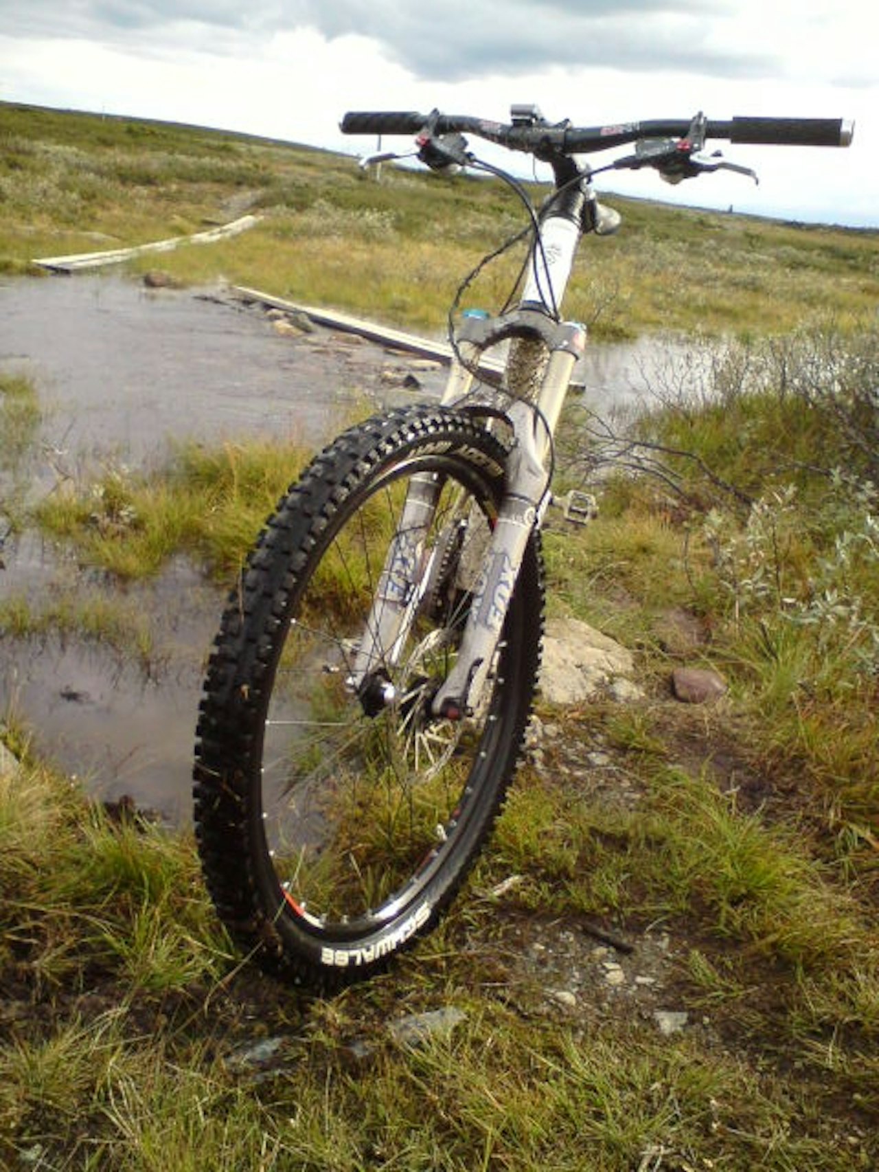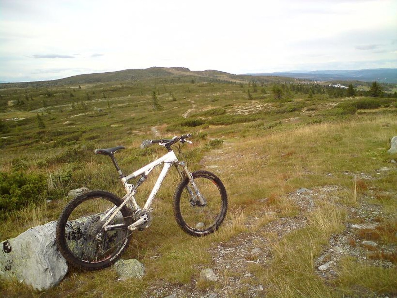 Opp grusvei og gjennom tidligere nevntehyttefelt, stien begynner rett under ørterhøvda, skyv sykkel til topps(10 min). Drapå innover fra toppen, etter noen minutter kommer du til et hestetråkk/skiløype ta denne til høyre etter en km drar den opp til venstre og klatrer ca en km opp på flata(flein) igjen. Nå er du oppe i et stort kryss ta til venstre her, sånn at du får følelsen av å sykle tilbake igjen, stien dreier etterhvert høyre og du er i fin flyt på vei mot storefjelltoppen. Etter ca 2 til 3 km kommer du til et stidele, her holder du høyre opp mot ei grillbu og videre derfra opp til veslefjell. Fra toppen så skal du ned mot vest(retn hemsedal) halveis nede skal du til venstre i stidele og nedover på skiløype ut på flata, krysse en bekk og rett frem i stidele etter dette.Nå blir stien noe mer teknisk i ca 3 km. Ikke så lenge etter at det har begynt å gå nedover så kommer du til et stidele. Stien til høyre går til Syno, stien bort dit er dritfin og kan anbefales som en avstikker (4 km t/r).Hvis du ikke gidder der så skal du altså holde venstre og venstre igjen etter bare noen meter....du skal opp på langhøgda, etter ei kjapp kneik så er du oppe og her venter fet sti bort til gullknapp og ned til storefjellhotell.Vel nede på oversiden av hotellet tar du til venstre på grusvei sånn at du kommer opp til en svær lavvo forbi denne og gjennom grinda.Ikke ta første til høyre nå, dra heller hakket lengre inn og ta ryggen til høyre, så får du en fiiiin liten stisnutt før du er nede ved kamben hotell og videre ned til stor grusvei hvor du tar til venstre og kommer deg opp til bilen.