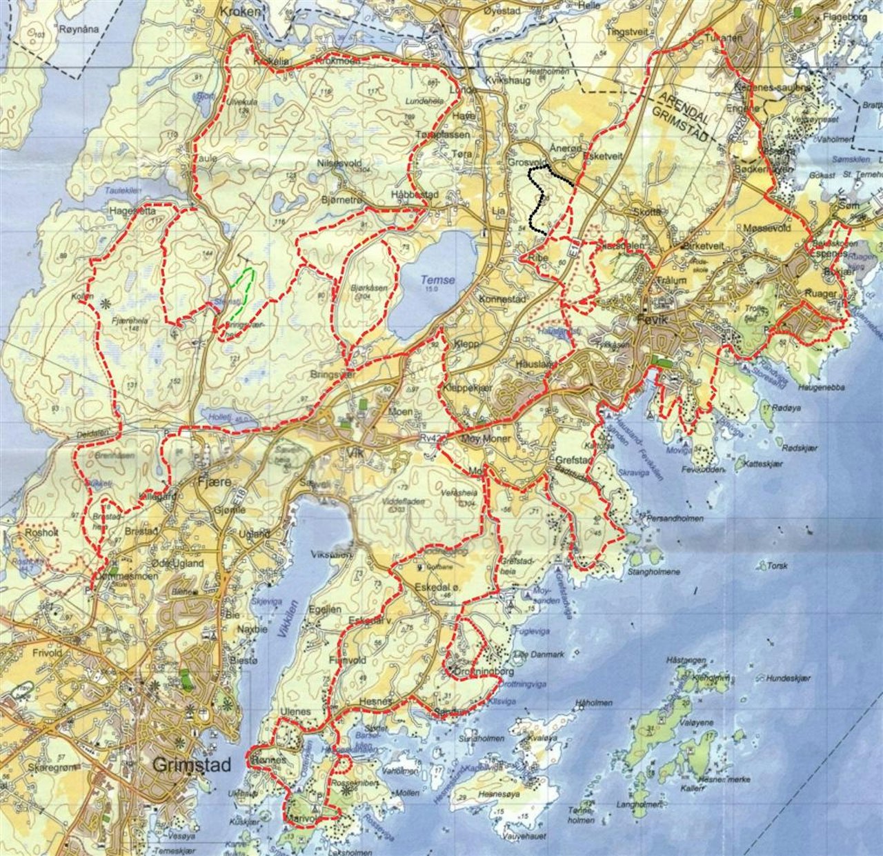 En terrengifisert versjon av Dag Ottos "På sommerhjul i Grimstad". Alltid den første turen jeg tar på sommeren for å få den gode feriefølelsen på Sørlandet. Også finn på våren da det blir tidlig snøbart.Her er vanskelig å finne lange stipartier, men denne turen nøster sammen noen av de beste partiene i området.