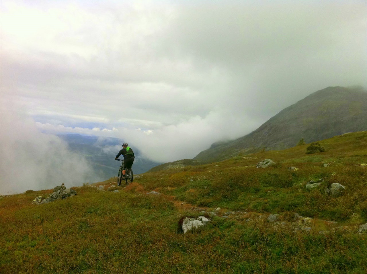 Fin fjellsti intill det begynner nedover der er det Bratt med en del stein, avsluttningen er en drøm.