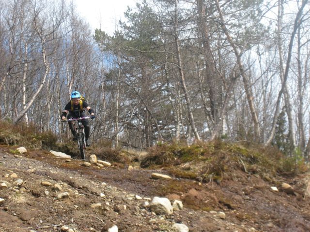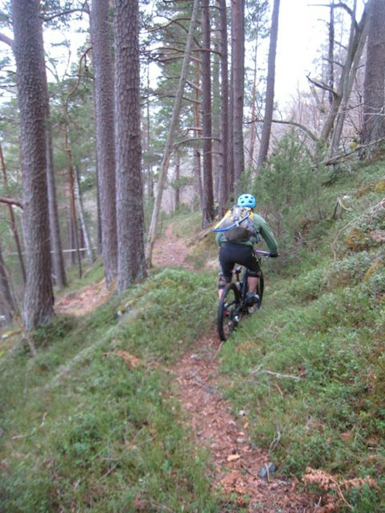 900hm teknisk smalsti, -20.6% gjennomsnittlig høydefall.Sauetrakk i Høgfjellet, "freeride" ned fra Langfjellet til Hagbøsetra, bygd kløvsti i åpen furuskog, bratt siste partiet ned til fjorden (ikke med på filmen da kameraet konket)