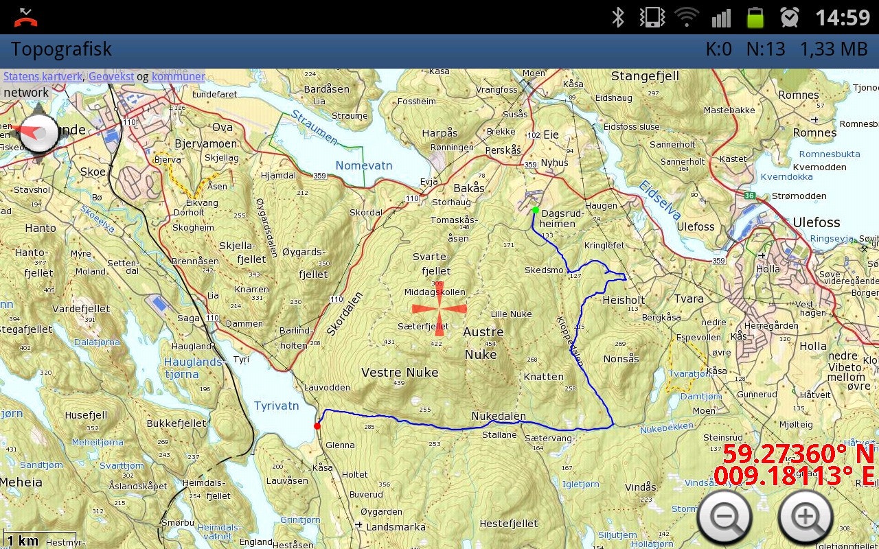 Kan kombineres med en runde rundt Tyri vann og "skiløypa" på Sagamoen. Registrer deg på connect.garmin.com så kan du laste ned ruta i .gpx format som virker sammen med Norgeskart appen til på android telefoner.God tur!
