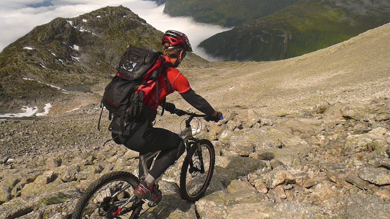 Svært bratt og langt opp, med nesten berre bæring av sykkel. Bratt og krevande ned igjen på stein, ur og hard sti. Praktisk talt 1810 hm i ein kontinuerlig nedoverbakke. Nord-Europas lengste....