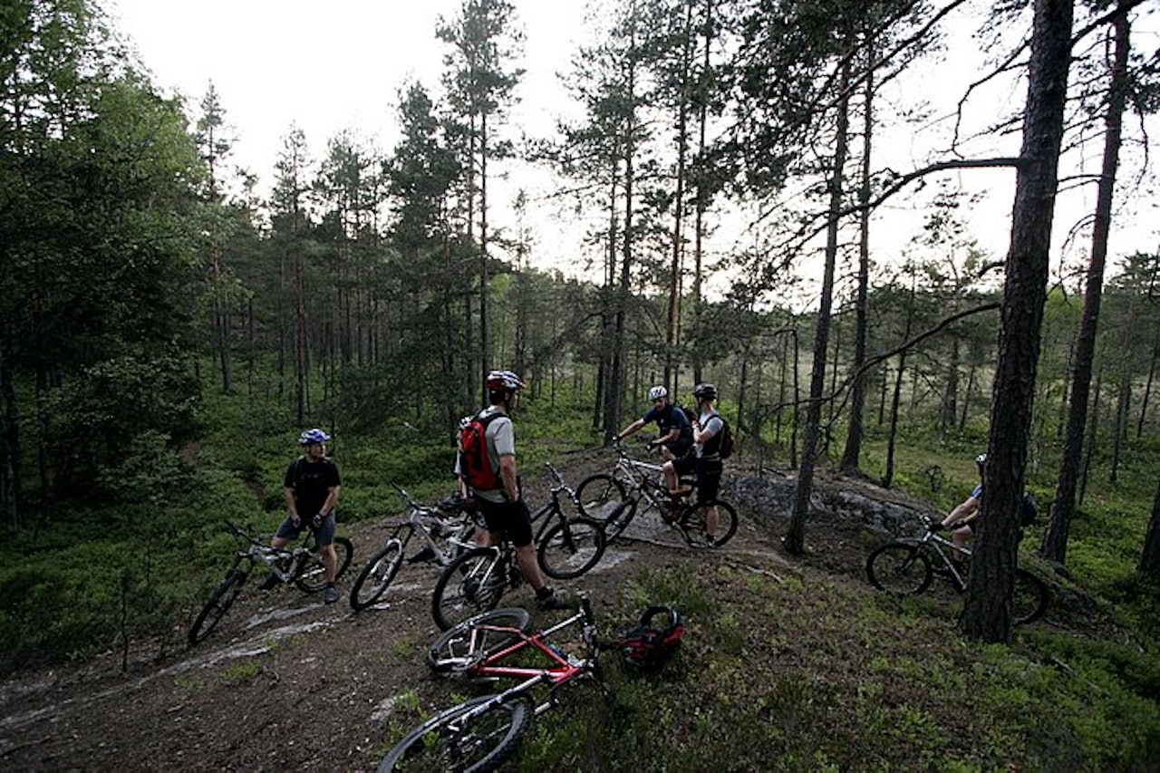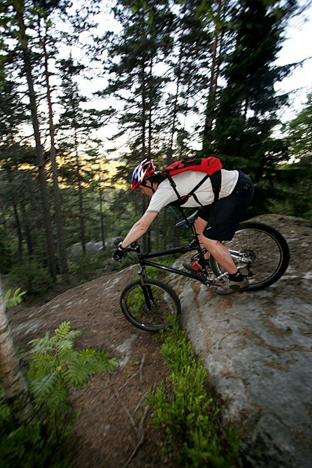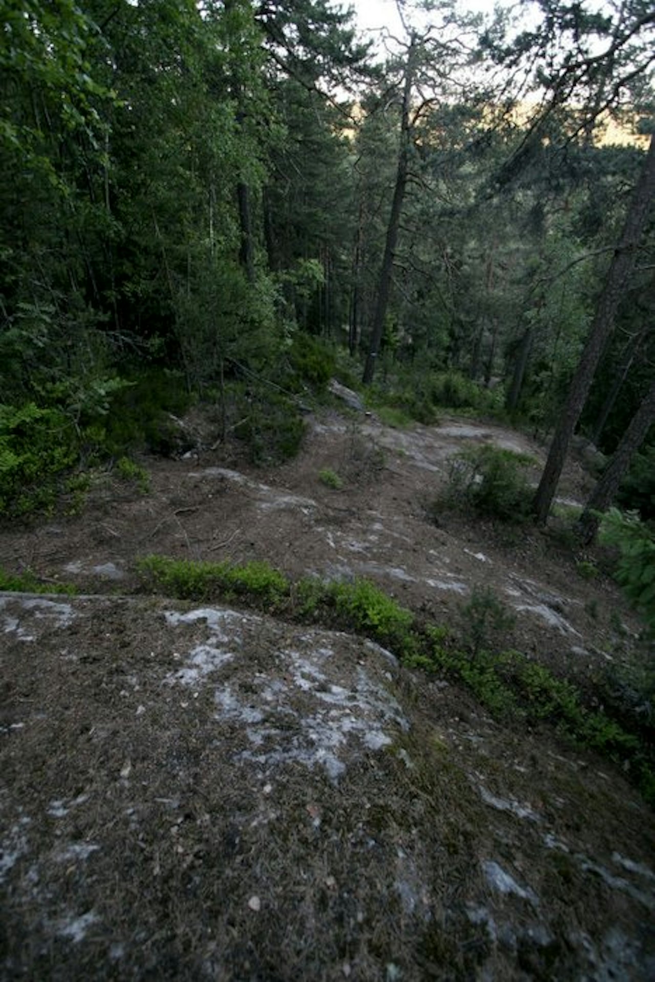 1. Et par hundre meter nedover veien mot sør fra krysset Olaf Helsets vei / General Ruges vei ser du en stor parkeringsplass som hører til Skullerudstua. Følg gangveien fra søndre/nedre hjørne av denne p-plassen. Se ellers første post i denne tråden for hvordan du kommer deg hit fra sentrum med bane eller bil.2. Nede på gress-sletta øst for Skullerudstua tar du til høyre ned til en gangvei langs bekken og følger denne ned til høyre igjen i ca 20 meter. Der ser du et blåmerket skilt mot Østmarkkapellet. Det peker inn til venstre over ei lita bru, og den skal du over.3. Nå klatrer du opp en jordbakke som viser seg å være en lysløype. Følg denne løypa rett fram, helt til du kommer ut på og krysser et lite jorde og møter en grusvei. Denne følger du oppover til venstre.4. Når grusveien flater ut og litt nedover, ser du snart en bred sti ta opp i skogen rett foran deg. Bare ta svakt venstre av grusveien når du kommer ut på den åpne plassen og hold rett fram. Du skal nå klatre opp flere svaberg, og fortsetter på relativt bred sti videre.5. Nå venter enkelte litt krevende klatringer, siden det skal plukkes høydemeter for senere bruk. Etter en snau kilometer må du ta 90 grader til venstre i et kryss, bare følg skiltingen mot Østmarkkapellet. Fortsatt noen stramme kneiker igjen, men jevnt over veldig fast og flytpreget sti hele veien – tross stedvis mye stein.6. Snart kommer du ned til et vann på venstre hånd. Det er Rundvann, bakom på den andre siden av vannet ligger Østmarkkapellet skjult av skogen på en høyde. <b>Her ved vannet kan du velge:</b>A. Sykle utom Dødsbakken og klatre grus tilbake. Runden tar ca 20-25 minutter i jevnt tempo.B. Ta 150 grader til venstre og sykle stien langs vannet tilbake nordover mot Skullerudåsen.Hvis du vil ta loopen bortom bakken, kommer du tilbake på nøyaktig samme sted. Se nederst i denne teksten for info om hvordan du finner Dødsbakken og veien tilbake hit igjen. Her fortsetter rutebeskrivelsen med alternativ B for de som ikke har tid eller lyst på denne ekstraloopen.7. Når du har tatt ned på stien som går nordover fra vestsiden av Rundvann, skal du straks holde til venstre i første klatring. Deretter klyver ruta kjapt opp på ryggen av Skullerudåsen og går framover i et par kilometer. Du skal bare holde rett fram hele veien, helt til du omsider ser at det begynner å gå skikkelig nedover på et sted der stien deler seg i to. Akkurat der ser det mest naturlige stivalget ut til å være høyre, men NB: her skal du ta videre bortover til venstre og holde høyden et stykke til.8. Snart er du like over toppen av Fjelstadbakken, som ligger skjult bakom løvtrærne foran deg i det du forstår at her begynner det å gå nedover igjen. Se inn mellom trærne til venstre, så ser du at det stikker inn en liten sti vestover. Følg denne. Dette er det jeg kaller Alfenrunden.9. Etter et par hundre meter ser du en åpning i skogen foran til høyre – det er en stor myr som du kan sykle rundt, eller du kan ta inn til høyre før myra. Det siste medfører minst sjanse for å rote seg bort, den første er veldig fin, men plundrete å forklare siden det er myriader av småstier flere steder underveis. Du skal uansett valg ende ved slutten av punkt 10.10. Dersom du velger å ta inn til høyre før du passerer myra, skal du holde rett fram og videre nordover – der du straks passerer et meget smalt, men dypt bekkefar som skjærer seg ned i skogbunnen. Like etter bekken skal du ta rett til høyre og følge den bortover.11. Denne stien går snart nedover, den går over en vindfelt trestamme, og den fortsetter nedover gjennom noen temmelig tekniske utforpassasjer. Kort etterpå svinger den seg silkemykt mellom stammene i den tette barskogen, før den spytter deg ut på en grusvei.12. Herfra kan du ta tilbake på stien og rett ned til høyre, så vil du snart komme ned på grusveien som leder deg noen få hundre meter ned til jordet foran Skullerudstua og parkeringsplassen der det hele begynte.<b>Slik finner du Dødsbakken:</b>Denne beskrivelsen begynner og slutter ved punkt 6 over.* Når du kommer ut på turveien ved Rundvann (etter å ha syklet opp fra Skullerudstua), ser du et stiskilt på høyre side av veien 20 meter lengre framme. Der tar du inn smal sti til høyre og følger denne oppover og bortover et stykke. E * Etter noen hundre meter vil du se at stien deler seg, på et sted der du kan ta til venstre i jevnt terreng, eller ta til høyre og opp på en knaus som krever at du må klatre med sykkelen et par meter opp. Følg med så du ikke går glipp av dette, krysset er umerket. Mulig det henger noen plastremser i greinene der, hvis de ikke er tatt ned. * Når du har klatret opp her, begynner det snart å trille nedover igjen, og herfra og ned til grusveien er det ingen flere kryss. Når du ser at utforkjøringen begynner, er det bare å slippe setet godt ned og begynne å bli kjent med nøyaktig hvor mye grep framdekket ditt egentlig har til disposisjon når det gjelder. Ikke noe skummelt terreng med farlige elementer, bare en god, gammeldags brattbakke som krever en god bremsehånd eller to - pluss ekstra balanse. Et par brattkanter/nedslipp helt i starten ser litt gufne ut, men går fint. Den aller første er enklest å ta helt inn til høyresiden. * Etter ca 300 meter lander du på en grusvei. Ta til venstre bortover, og deretter oppover til venstre i første kryss. Når du nær toppen kommer til et Y-kryss, holder du til venstre ned bakken, rundt svingen og følger veien tilbake til enden av vannet der du kom ut for en stund siden. Deretter fortsetter du fra punkt 6 og videre.<b>Hvis du vil ha mer:</b> Turen som er beskrevet her ender som du ser på en grusvei i punkt 11. Denne grusveien kan selvsagt lede deg til flere bra stier. Du kan for eksempel følge den bortover til høyre og passere Fjelstadbakken, fortsette oppover grusveien i en sving - ned en utforkjøring som flater ut, så 90 grader til høyre i et t-k