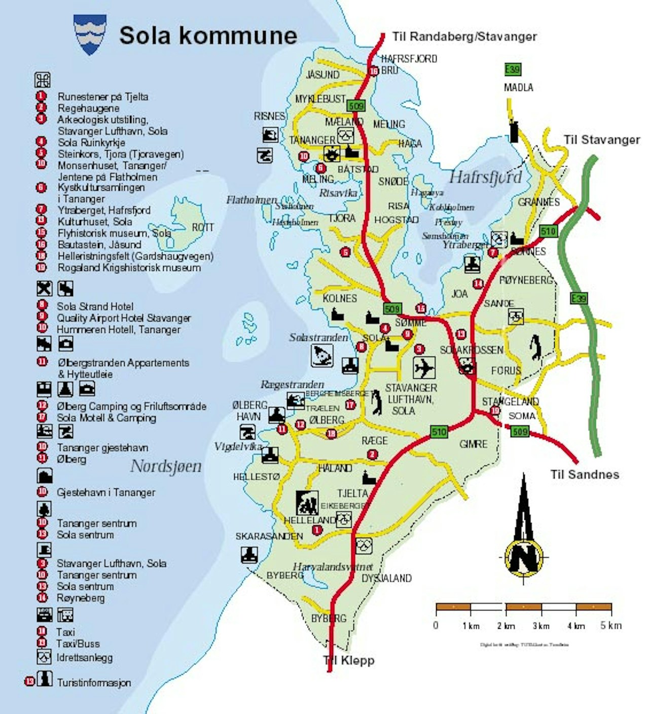 Kar over området er å finne på bensinstasjoner eller mer detaljerte kart med sykkelruter finnes å få hos Sola Kulturhus i Sola sentrum.