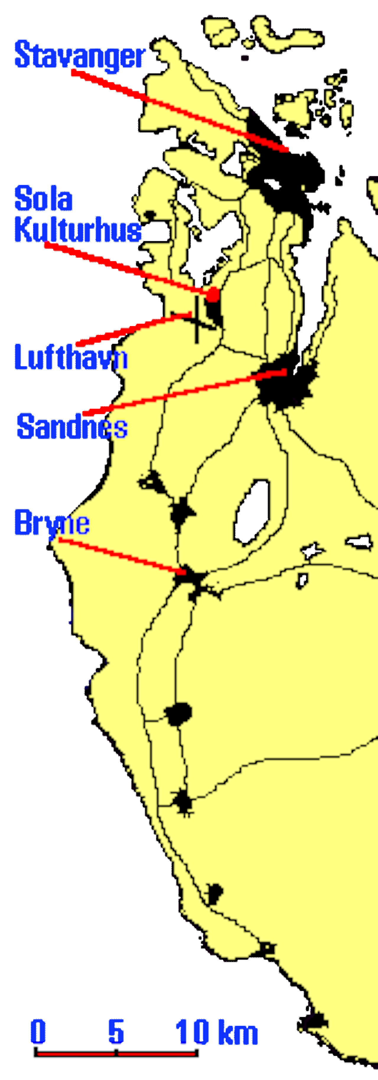 Ligger rett utenfor Sola sentrum. Lett å finne fram, godt skiltet. Skulle en ikke finne fram spør lokale og du er garantert veibeskrivelse av kjekk solabu!