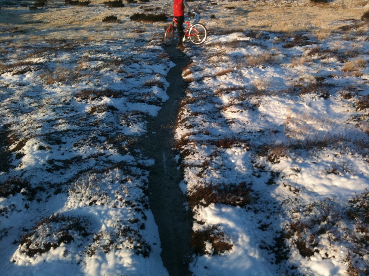 Hovedsaklig smal sti med grusunderlag. Noen få myrpartier og stein.