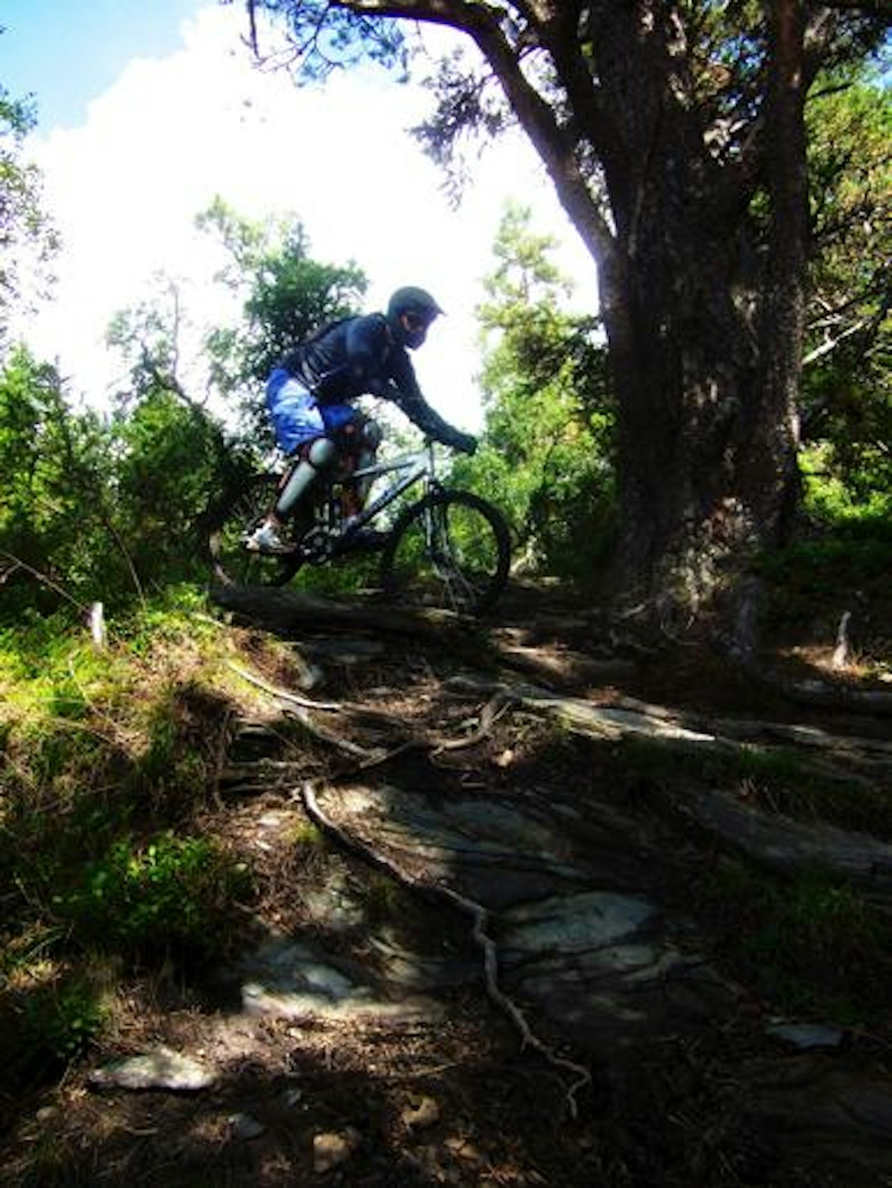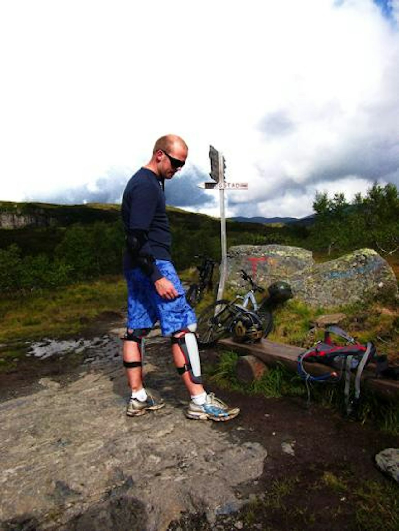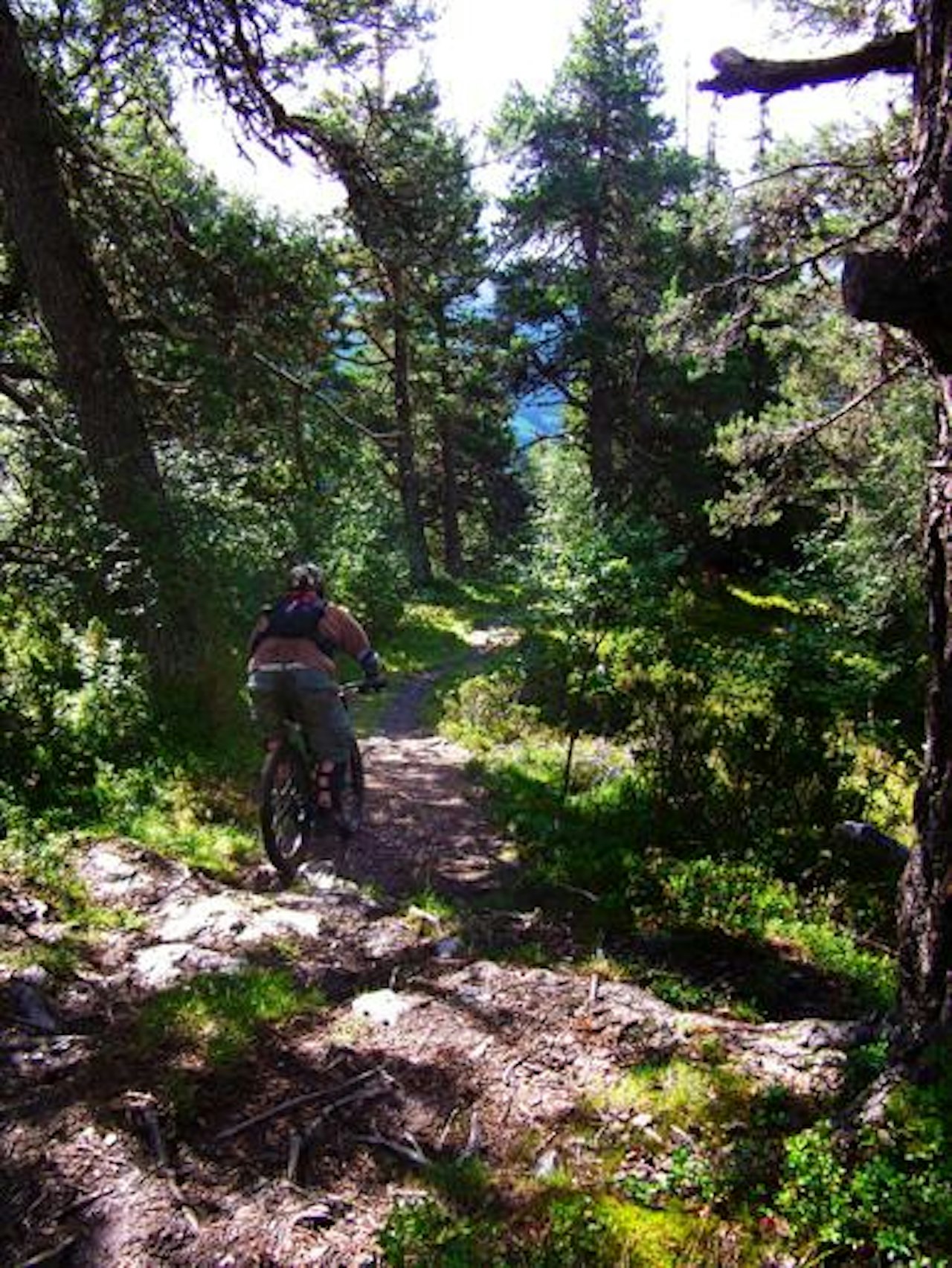 Du starter ved Voss Stasjon, parkér bilen og trill syklen ut av toget og forbi Flesichers Hotel og over skinnene via gangbroen. Herfra fortsetter du oppover mot Hangursbanen, ca. 250m (følg skiltene mot Hangursbanen).Ta Hangursbanen opp til Hanguren (660 moh), det koster 100,- inkl. sykkel. På baksiden av Hangursrestauranten holder du til venstre via stien og går gjennom grinden. Etter ca. 50m kommer du til et stort skilt hvor stien forgrener seg i 3. Du skal rett frem, på den mest brukte og veltråtte stien. Nå må du trille/sykle ca. 600m og ca. 50 høydemeter opp inntil du møter et skilt hvorpå der står "Raugstad", hér starter ruten (der står også en benk).De første 3-400m er bortover, etter dette tiltar nedkjørslen og du kommer inn i skogen. Her er der en del røtter og det kan være ganske glatt på våte dager. Etter en stund kommer du til ett kryss, du fortsetter nedover (til høyre). Etter dette kommer der rekkverk på høyresiden, pass på, der er noen steder hvor der ikke er rekkverk og der er langt ned!På et tidspunkt slutter stien og blir til traktorvei. Følg den og ta de første 3 skarpe svingene. Husk på at der før siste svingen er en plass hvor de hugger ved og at der her er en grind.Etter du har tatt de 3 skarpe svingene åpner lannskapet opp og i den neste svingen du møter dreier du av traktorveien og fortsetter opp til venstre. Her er der enda en grind som du passerer. Etter dette går stien rett frem rettning Voss Sentrum og Mølstertunet, ca. 1km. Det er viktig at du ikke dreier fra stien og sykler bratt nedover, da ender du i en eller annen bakhage! Fortsett til stien tar slutt ved grinden ved Mølster, Voss Folkemuseum.Når du står foran grinden på Mølstertunet tar du til høyre og ned småstiene til Voss Stasjon, litt av en kabal, men du greier det. Der er skiltet "sentrum".Her er et stikart fra Google Maps: http://maps.google.no/maps/ms?ie=UTF8&hl=no&msa=0&msid=104859542520582332355.00048e838d1e3b48dac8b&ll=60.633638,6.402369&spn=0.022939,0.077162&t=h&z=14