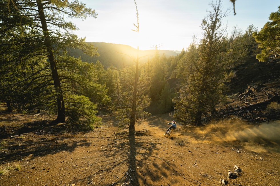 25-åringen pusher grensene i stupbratt terreng, ned smale renner, hvor steiner på størrelse med en hånd flyr forbi ham, på grov grus og i svært høye hastigheter.