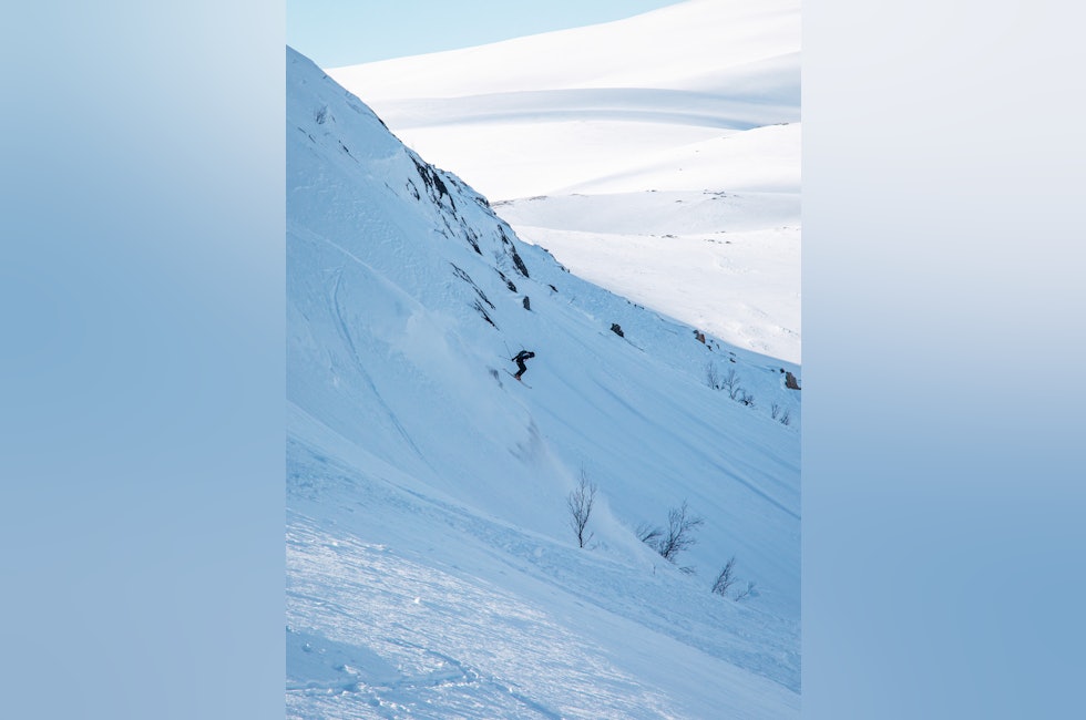 Etter syklingen byttet de fleste til ski- eller snowboardstøvler for freeridekonkurransen i Kaltdalen, som for noen år siden ble omtalt av Fri Flyt som en av de beste plassene i Norge for skogskjøring tilknyttet alpinsenter.