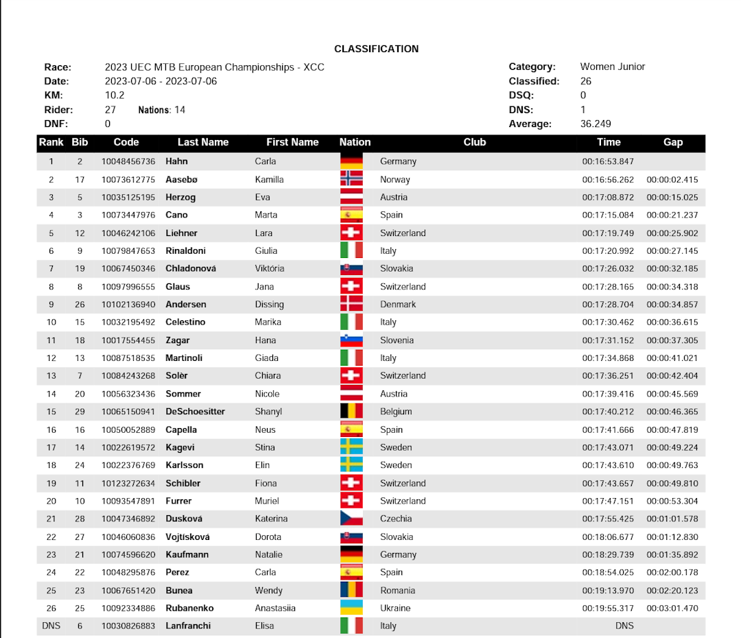 «Hun var 2,4 sekunder etter tyske Carla Hahn i mål. Den siste pallplassen var det Eva Herzog som tok med hjem til Østerrike. Kamilla tok sølvet bare få dager før hun fyller 17 år.»