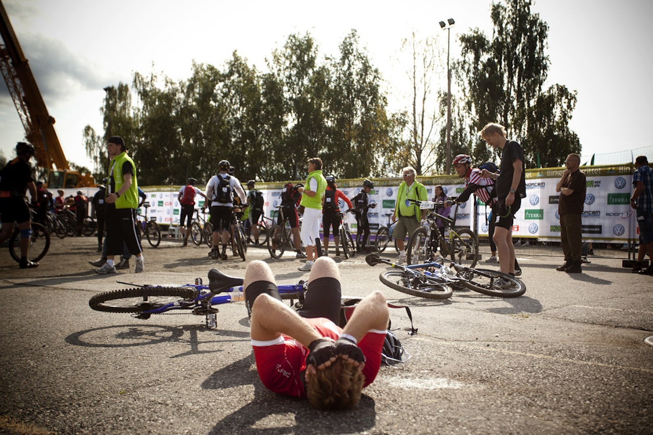Én etter en kom de såvidt trillende over målstreken, den ene mer sliten enn den andre. Dette bildet er bare ett av mange med utslitte syklister som motiv.
