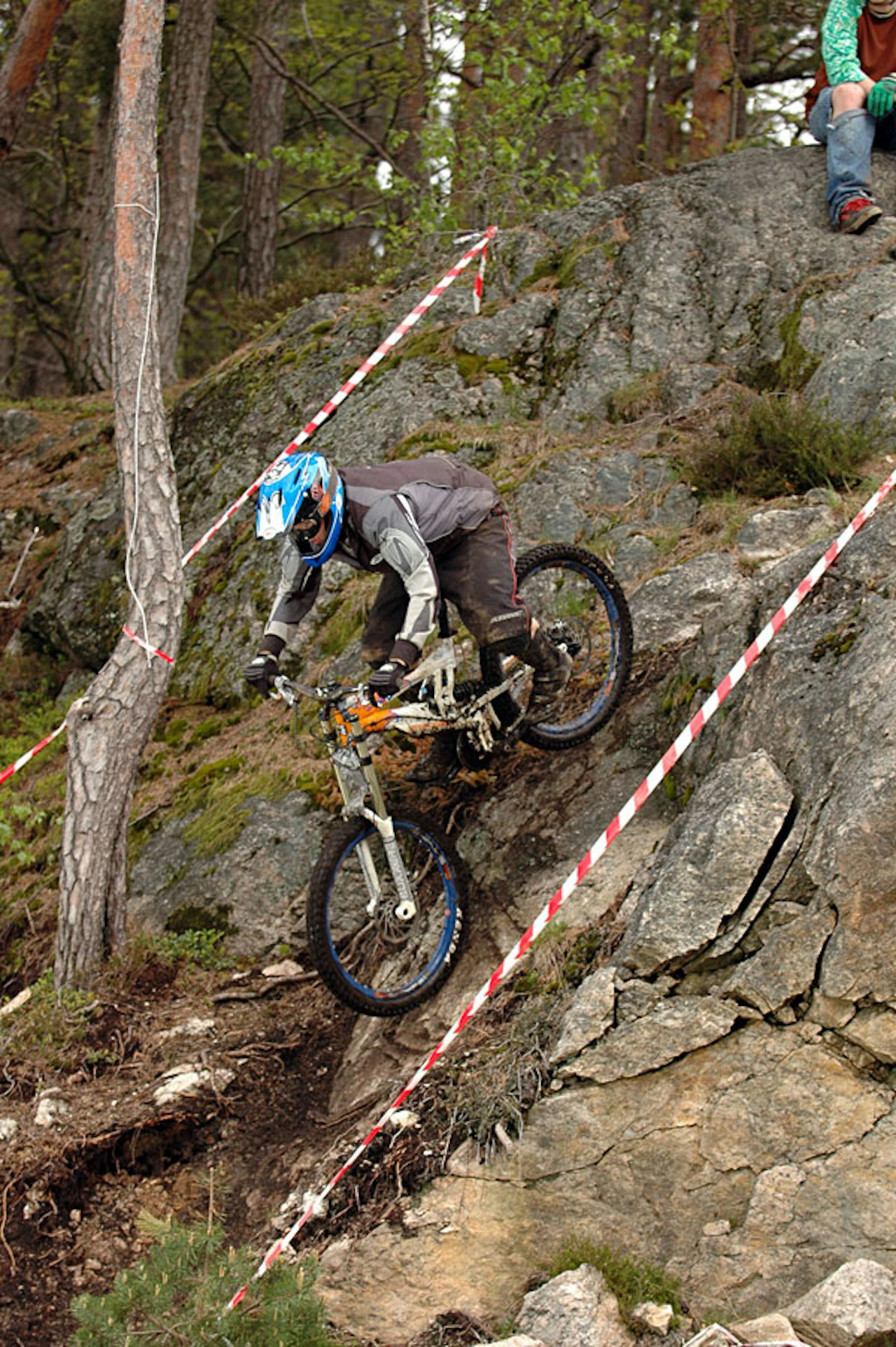 Det hadde regnet i to døgn og løypa var gjennomvåt. De tøffeste partiene ble ekstra harde, og det var ingen rom for feilmanøvrering. Sleipe røtter og stein lurte bak hver eneste sving.