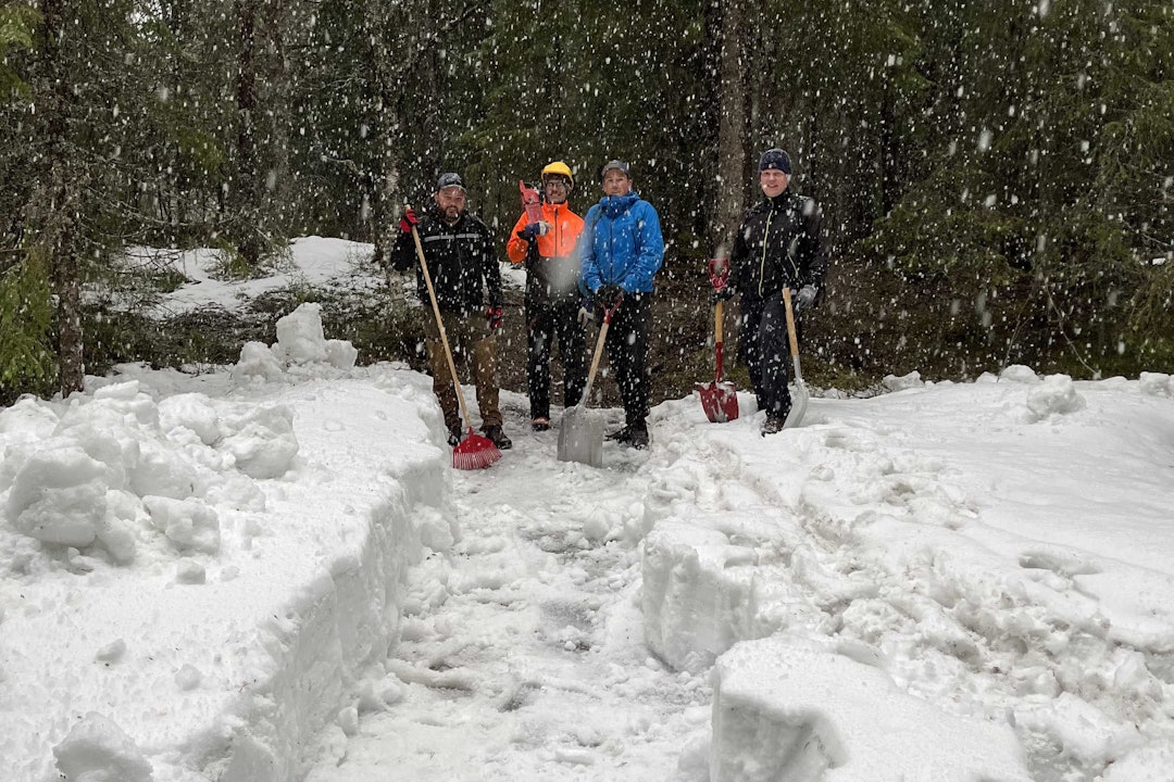 I Trondheim derimot, er situasjonen en annen. Der skal sykkelklubben TVK arrangere Norgescup i rundbane 4-5. juni, i Nilsbyen Terrengsykkelpark. Og trønderne har ikke slitt med snømangel denne vinteren, noe som har resultert i at det ligger mye snø i løypene ennå. Den utfordringen tok arrangørklubben på strak arm - med snøfreser.
