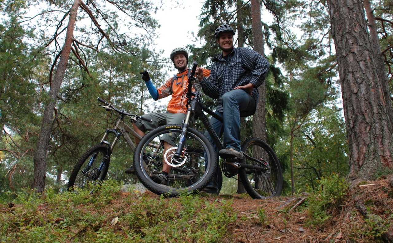 Løypa offentliggjøres ikke før gjennomkjøringen på rittdagen, men befinner seg på høydedraget ved Store Brevik i Son - til høyre kan du se Joachim (t.h.) og Lars vise fram terrenget. Gjennomkjøringen av Son Fastride-løypa åpnes fra klokka 10.00.