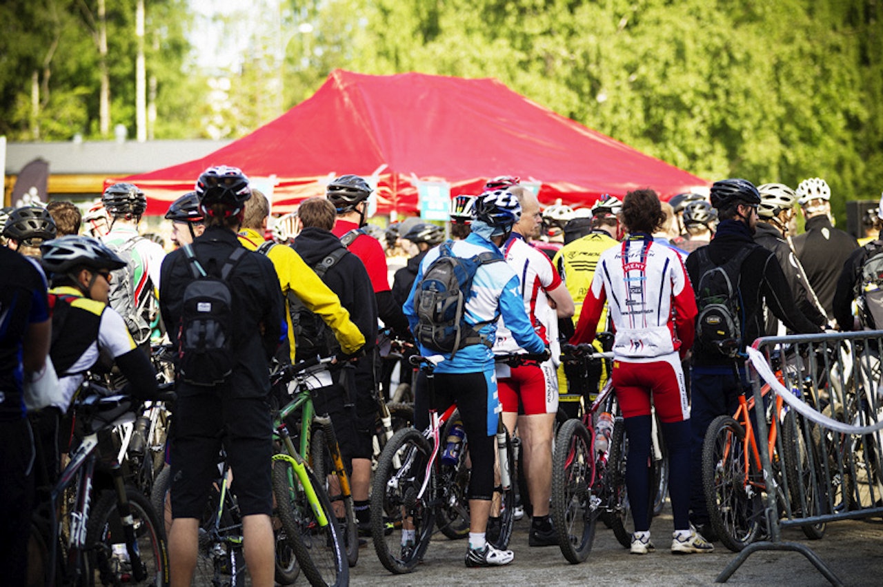 Sporty utdrikningslagDenne stakkaren våknet til følgende overraskelse fra kompisene om morgenen; "du skal sykle terrengsykkelrittet". Vi bøyer oss i støvet for sporty innstilling! Norgesmesteren på startÅ delta i Terrengsykkelrittet ble i år en sisteliten-avgjørelse for regjerende Norgesmester i maraton, Lars Ragnar Manengen. Øyverværingen hadde vært plaget med sykdom og drøyde avgjørelsen til siste øyeblikk. Sjetteplass med sykdom i kroppen sier uansett litt om kapasiteten hans. Kaptein RødskjeggAslak Mørstad er definitivt på hjemmebane i denne løypa, og er viden kjent for å være lynrask ned utforprisen. I år var han kvikk oppover også! Terrengsykkelritt i ordets rette forstandStartnr 529,Helge Prydz viste alle at lycra er oppskrytt, og syklet grisefort ned fra Skullerudåsen Egen tilhengerskareStartnr 12 hadde ekstra god grunn til å smile opp den stupbratte bakken. På toppen stod nemlig Team Kjekkas rigget til med telt, heiagjeng, og en noe spesiell maskot... Hesten, trommen og....Det kan ikke bare være lett å komme dausliten opp en bakke, for å møte synet av en hest som slår på tromme. Noen lo så de holdt på å ramle av sykkelen, andre skjønte ingenting, uansett et kjempemorsomt innslag blant publikum ute i løypa! Det er turene som tellerUndertegnede hadde ikke truffet sykkelkompis Tomas Løkken på ganske nøyaktig ett år. Sist vi møttes var også på Haraløkka! Årets Terrengsykkelrittet var også Tomas´ fjerde sykkeltur så langt i år, og han gjorde som en stisyklist skal; tok det som en tur. POFF!De steinete partiene ned fra Skullerudåsen krevde mange sine slanger, dekk og felger. Her jobbes det iherdig med å bytte slange mens konkurrentene suser forbi. Kampen om pallenOla Kjøren ledet lenge rittet suverent, men gikk på to punkteringer og måtte bittert se forfølgerne rase forbi. Her jages Håkon Austad (i front), av Greg Saw(til venstre i bildet) som til slutt tok seieren. Skummel landeveisrytterLars Ove Thoresen ble nummer to i årets første norgescup i Å i Heiane. Syklisten er kjent for å være rå i utforkjøringene på asfalt, og holdt ikke igjen i terrenget heller. Hele veien rundtOla Resell har vi sett litt til før i Terrengsykkel. I år var det to utfordringer for Ola; 1. å fullføre hele rittet (fjorårets versjon fikk en brå avslutning med bristet ribbein) og 2. prøve å holde tritt med sønnen. Ola kom seg helskinnet til mål, men måtte se seg slått av sønnen Erik med 15 minutter Stang utEn som det ikke gikk like bra for i år, var Henrik Kippernes. Den lovende 20åringen lå lenge godt an til en topp 5-plassering, men valgte feil spor i en sving, og fikk et ublidt møte med bakken. Årets heiagjengHeiagjengen fra Team Kjekkas støttet sporty opp med heiarop, trommer og godt humør til alle som passerte. "Lett og fin, lett og fin" fikk de fleste høre, og selv om ikke alle følte seg lett og fin hjalp hvertfall tilropene. Bra jobba, Team Kjekkas, vi trenger flere som dere! Det er i nedoverbakke det går nedoverLøypa hadde på tross av noe regnvær i forkant holdt seg tørr og fin, og svabergene kunne forseres uten frykt for store glipptak. Konsentrasjonen på toppStartnr 735,Rune Røsten holdt tunga rett i munnen, og trakterte sin Ibis med glans. Stort øyeblikk for SandstøHeidi Rosasen Sandstø tok sin første norgescupseier i maraton, og får her en velfortjent klem av mannen Karl Christian Sandstø. Gratulerer! Demodag på HaraløkkaDagen etter Terrengsykkelrittet var det duket for demodag på Haraløkka. Flere av de norske importørene stilte opp med demosykler for utlån. Her er det innføring i Shimanos XTR-gruppe. Friske fargerTrenden er tydelig, syklene blir stadig mer fargesprakende og fargekoordinerte. Her representert ved Cube og Trek.