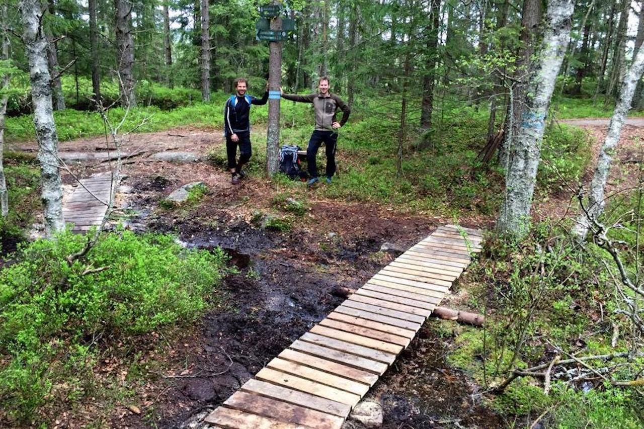 Det var spesielt Trulsen, en sti som også ble jobbet med under Skullerudprosjektet i fjor høst, som fikk en overhaling da IF Frøy og Terrengsykkelrittet inviterte til stibyggerworkshop med NOTS ekspertise. Der ble det bygget en 10 meter lang klopp og steinsatt to store gjørmehull.