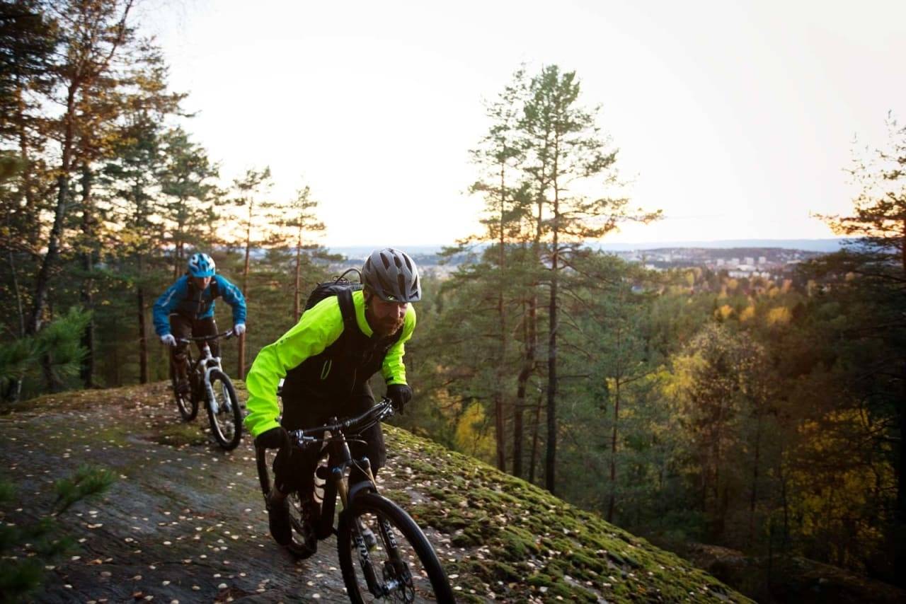 – Da jeg kom tilbake fra København var jeg egentlig mer interessert i å klatre enn å sykle, og syklet veldig lite. De gangene jeg syklet var det utfor på Frognerseteren som fristet mest. Men de siste to-tre åra har jeg syklet mer sti igjen. Og nå som jeg har fatbike sykler jeg nesten like mye sti midtvinters som om sommeren. Særlig i fjor vinter, da det var så mye snø, var det helt magisk. Det er masse ivrige hundeluftere i Østmarka som går ut grytidlig og lager flotte singletrack stier for oss som sykler fatbike. Det er skikkelig moro.