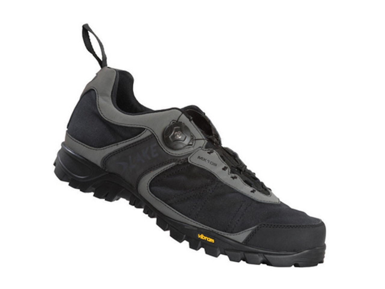 Skoene vi har testet, Lake MX105, er en av to sykkelsko-modeller for sti som Lake leverer. Den andre modellen, MX100, er en litt lettere variant som ikke er vanntett. Overdelen til MX105 er sydd sammen av et grovt, vanntett tekstil og syntetisk lær. Skoen sitter fast på foten takket være Boa-snøring som vi er godt kjent med fra mange andre skoprodusenter.